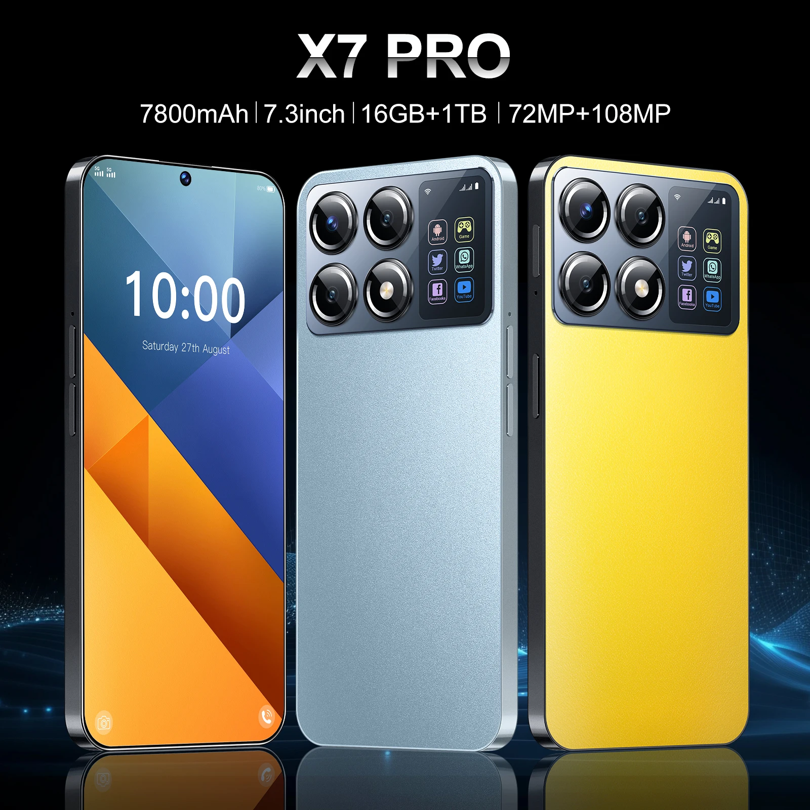 X7 Pro Smartphone, 7.3'' Full Screen