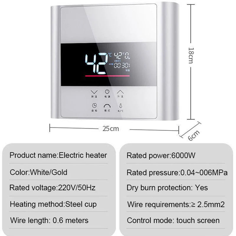 Wall Mounted Instant Tankless Water Heater 6000W